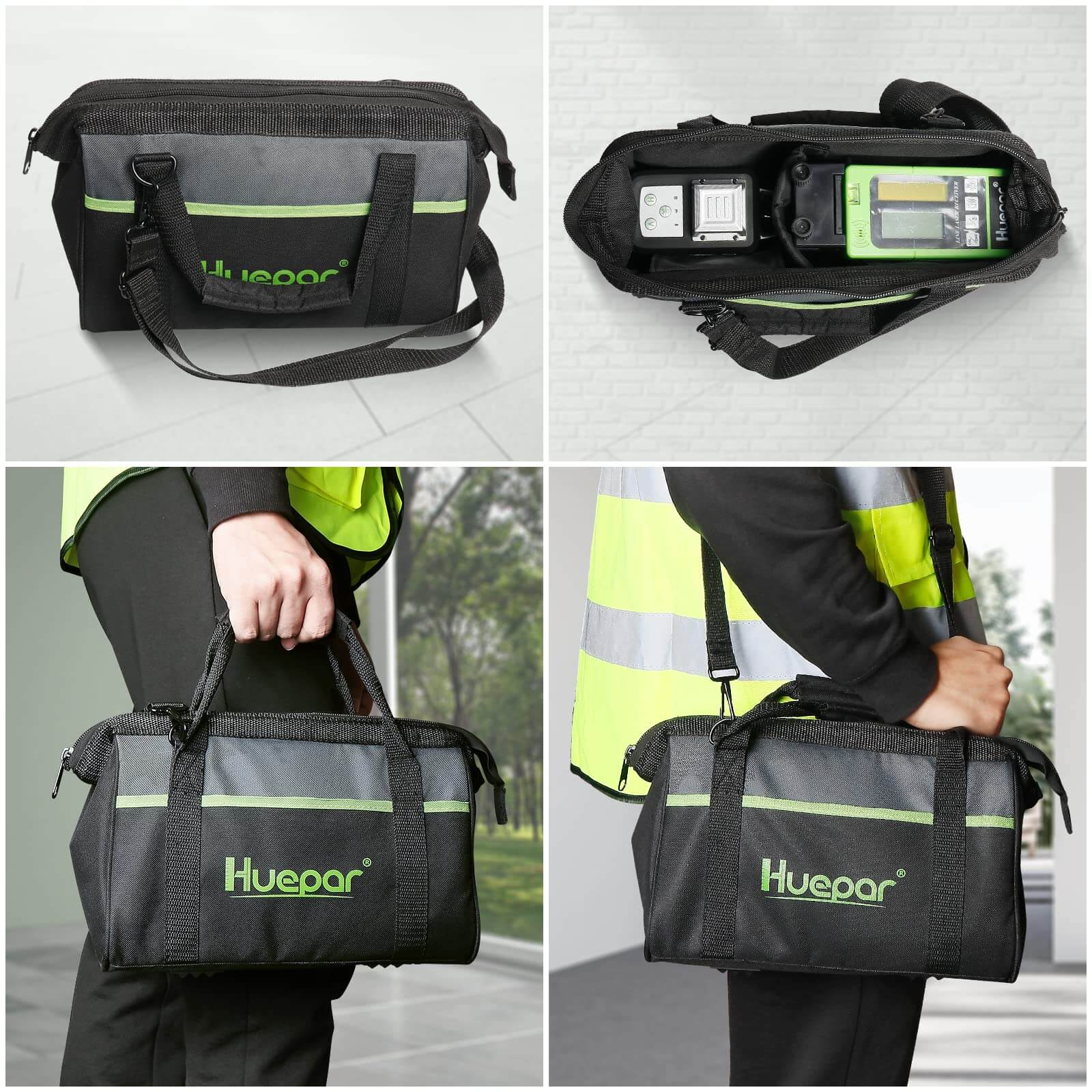La bolsa de herramientas viene con un asa acolchada adicional y una correa ajustable para el hombro que agrega comodidad adicional al transportar la herramienta y permite un tránsito seguro.