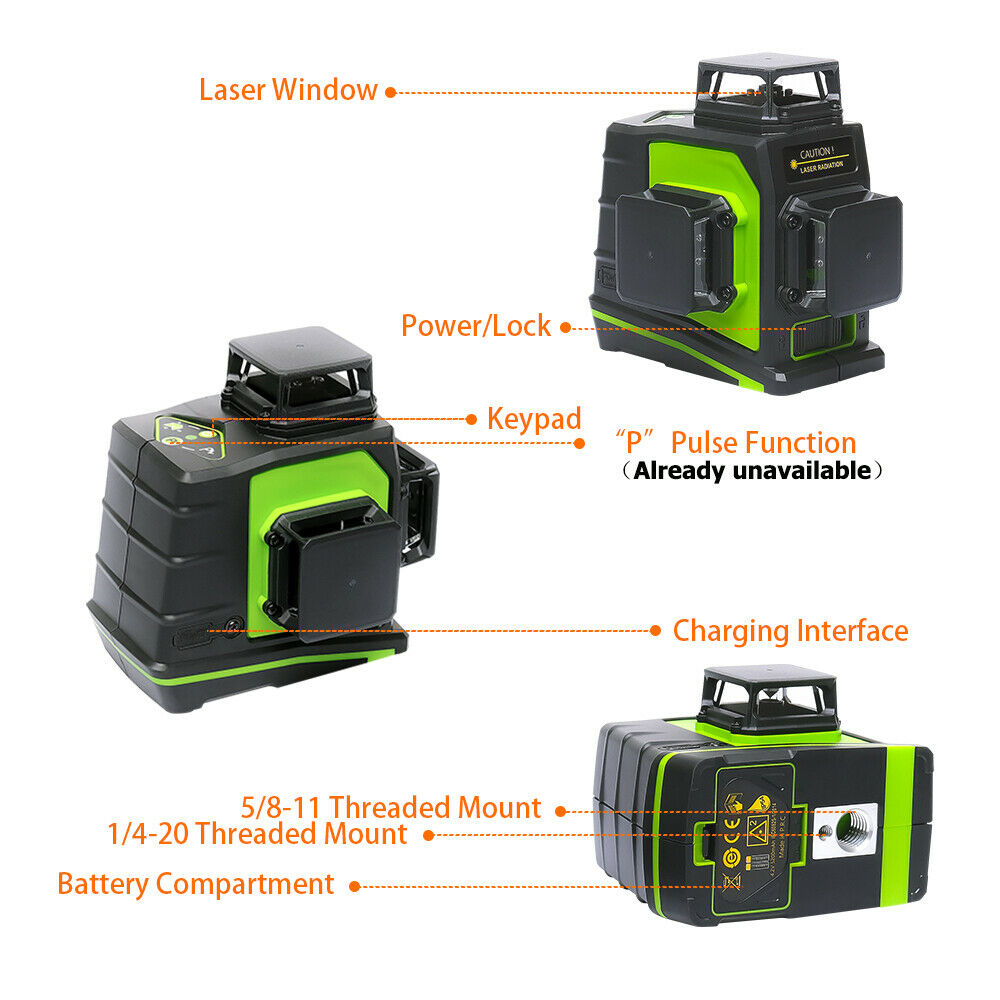 FUNCIÓN DE CARGA USB CONVENIENTE: Con la función de carga USB, los usuarios pueden cargar esta herramienta de nivel láser con cualquier dispositivo de fuente de alimentación USB incluso si extraen la batería del nivel láser. La batería recargable de gran capacidad puede durar 6 horas con todos los láseres encendidos. Este láser también ofrece roscas de montaje de 1/4"-20 y 5/8"-11 para sujetar temporalmente en su lugar o fijarse en el trípode.