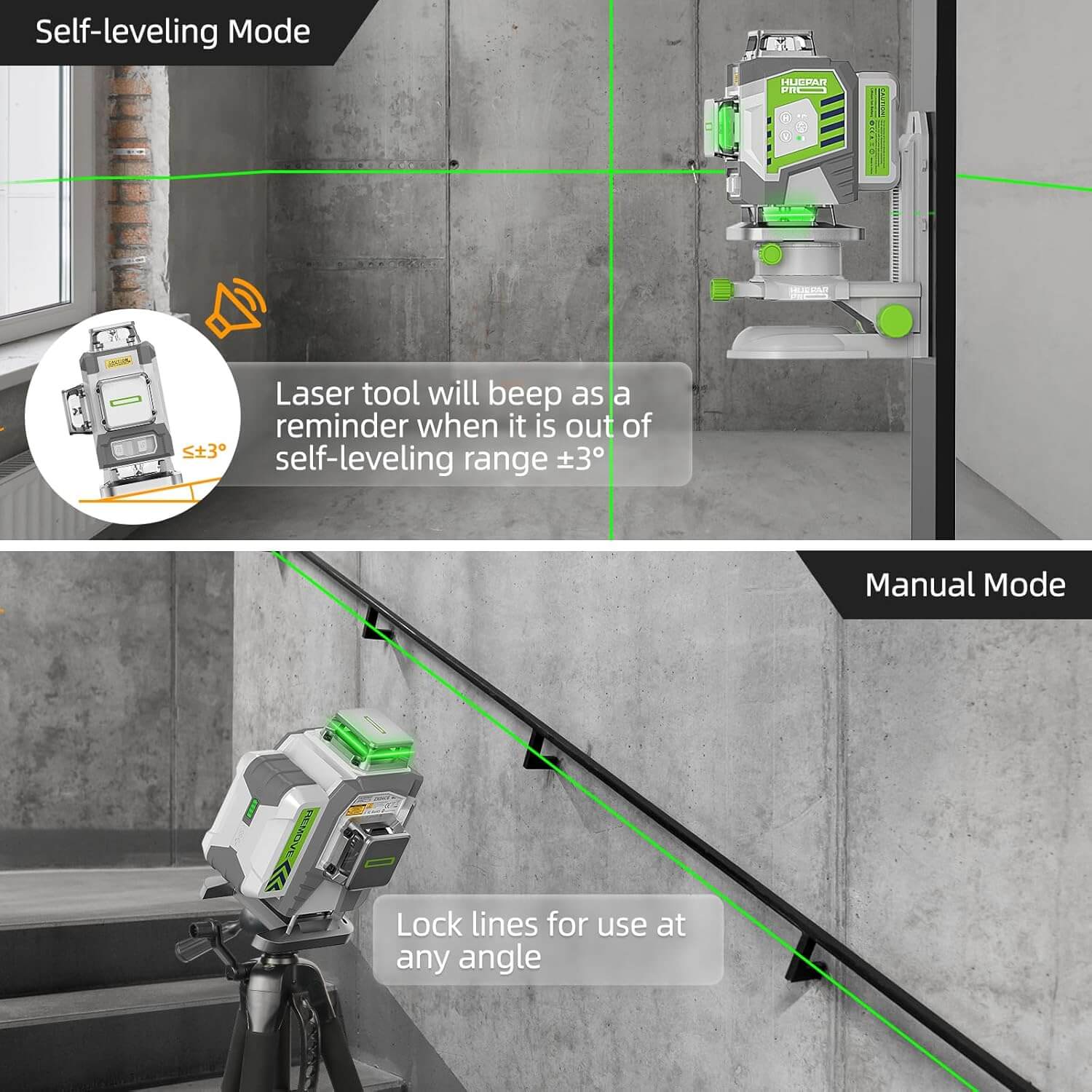 Puede usar el control remoto para activar o desactivar el modo de pulso sin tener que caminar constantemente. La distancia visible del láser es de 30 metros (100 LUX). El modo de pulso extiende la distancia de trabajo a 60 metros cuando se usa con un detector de línea láser Huepar LR-6RG, LR-5RG o LR-8RG. Este modo está diseñado para usarse en condiciones de luz brillante o al aire libre para ayudar a localizar la línea láser y debe usarse junto con un detector de línea láser.