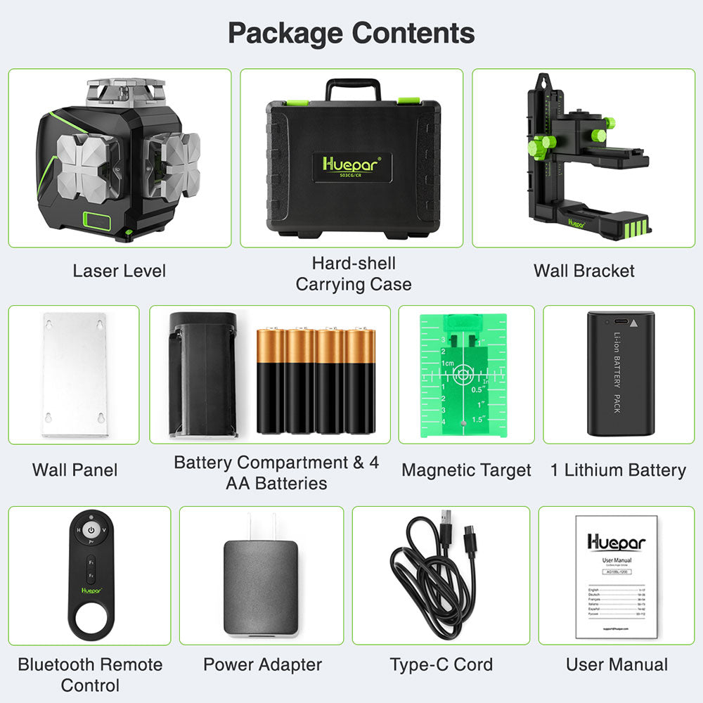 - 1 x Huepar 3D Nivel láser de línea cruzada S03CG