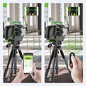 El nivel láser hay una pantalla LCD para obtener fácilmente el estado de la batería, el ángulo, el péndulo y el modo de pulso. La conectividad Bluetooth permite controlar la configuración del láser con la aplicación de Huepar y el control remoto. Los dos pueden encender / apagar las líneas láser y el modo de puls. Huepar aplicación también proporciona una alarma de desnivel. La herramienta láser puede conectar dos dispositivos Bluetooth simultáneamente.