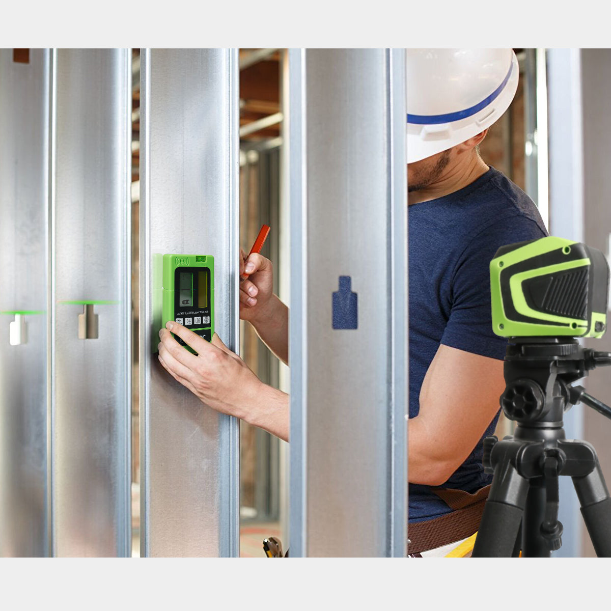 Amplía el alcance del láser hasta 50m con el Detector Láser de Línea Huepar en condiciones de luz brillante o al aire libre. Sólo es compatible con el Detector Láser de Línea Huepar LR-6RG/LR-5RG.