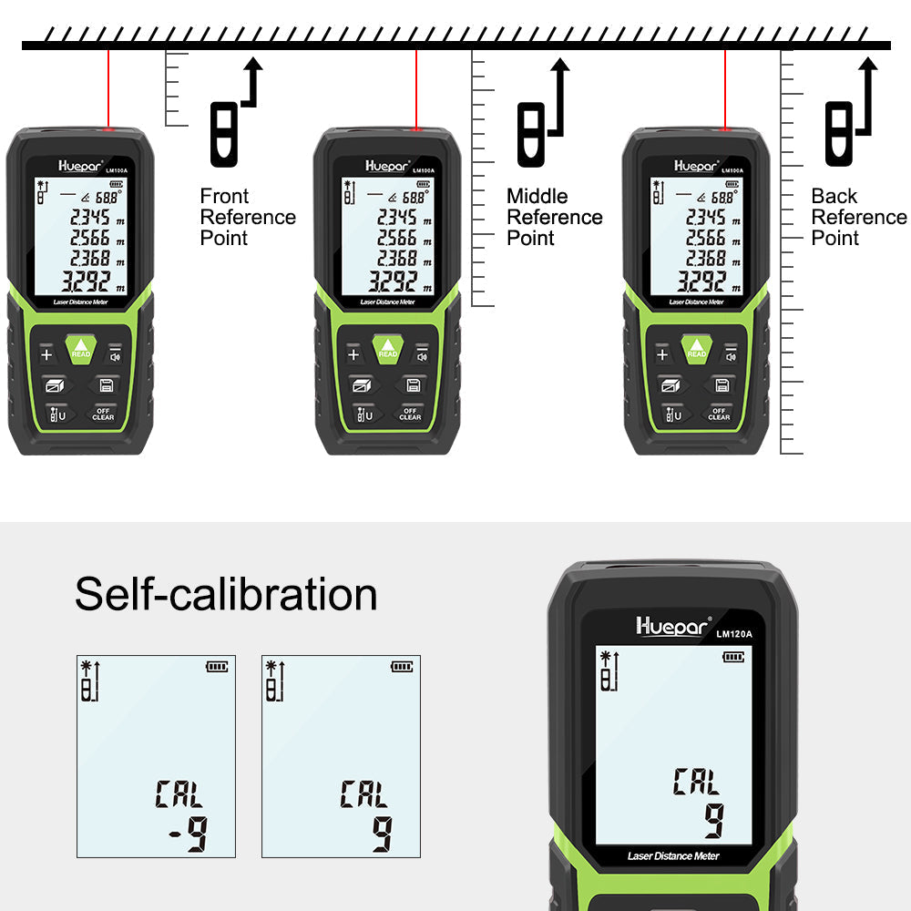 ALTA PRECISIÓN Y CONMUTACIÓN DE LA UNIDAD: El medidor de distancia Huepar presenta mediciones de largo alcance con una precisión extrema y puede medir distancias de hasta 120 m en 2 mm. La herramienta puede medir desde puntos de referencia delanteros / medios / traseros, lo que facilita la medición en diferentes escenarios. Todas las mediciones se muestran en tiempo real y se pueden cambiar entre M / In / Ft libremente.