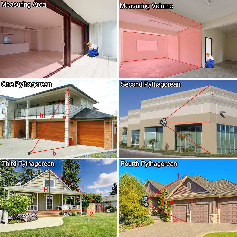 - El medidor de distancia láser digital Huepar es compatible con varios modos de medición, incluyendo distancia, área, volumen y medición de Pitágoras.