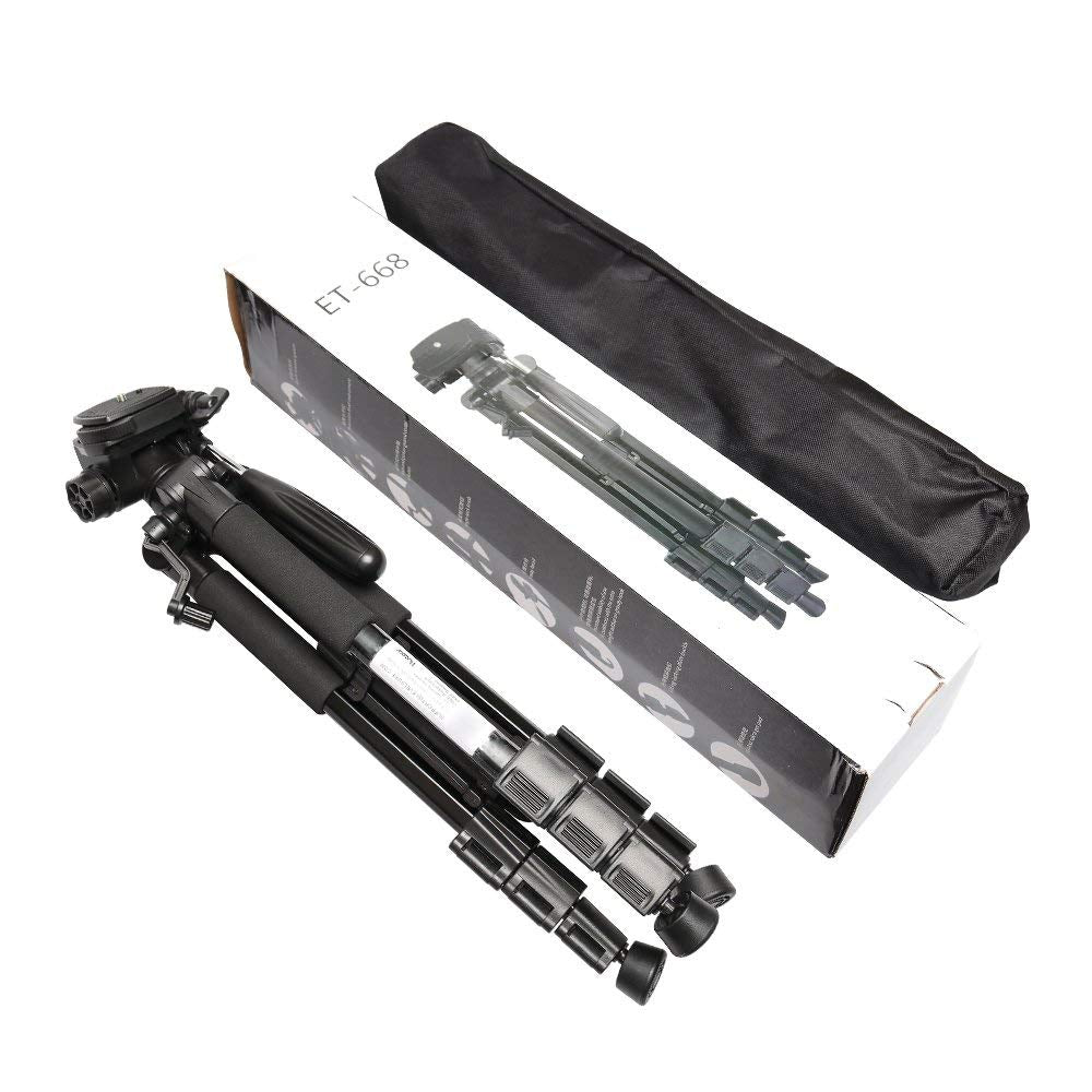 Trípode de cámara de alta calidad: El trípode estable para cámara está hecho de tubo de aluminio anodizado (tamaño máximo 23mm) y plástico ABS ambiental, muy resistente. La columna central y los tirantes centrales están hechos de aluminio para una mayor estabilidad. Si el trípode tiene algún problema, no dude en contactarnos para una buena solución. Conviértase en miembro a través del registro del producto, puede disfrutar de una garantía de producto más larga y mejor.