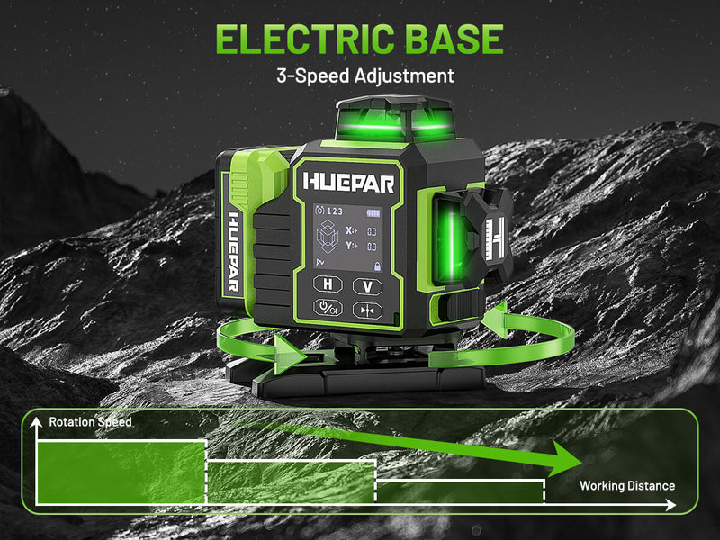 - El sistema de base de elevación permite un ajuste de altura fácil, asegurando un alineamiento láser perfecto con cualquier superficie de trabajo. Con soporte estable y tecnología de equilibrio inteligente, proporciona mediciones precisas en todas las condiciones, ayudándote a mantener altos estándares en cada proyecto.